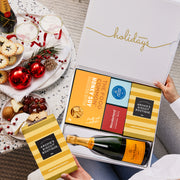 Bring luxury to the festivities with this elegant gift, headlined by the iconic Veuve Clicquot French Champagne. Renowned for its fine bubbles, bold structure and vibrant citrus notes, Veuve sets the tone for a sophisticated celebration. Paired with a delicious selection of festive favourites - including honey soy chicken bites, artisan lavosh, lemon jam filled biscuits and classic gingerbreads - this hamper offers a refined balance of savoury crunch and sweet indulgence. It's a gift that speaks volumes without saying a word. (12% ACL/VOL)