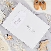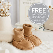 Includes a FREE pair of michu baby UGG boots. The Happy Baby hamper is the perfect gift to welcome any new arrival. With a free pair of michu branded baby UGGs, those little toes will stay warm and snug. The hamper also includes the super soft and cuddly Rupert & Jane Henry plush bunny, which will quickly become a cherished companion. The Rupert & Jane long sleeve romper, beanie, a bib, and full body romper provide comfortable and stylish options for baby's wardrobe. The michu knitted luxury baby blanket is perfect for snuggles and naps. And for added sweetness, the hamper also includes Hopscotch mixed chocolate raspberries and the michu teether to soothe baby's teething gums. The hamper also includes a timeless classic from Rupert & Jane's collection, ensuring that the gift will become a treasured addition to the family's library. Celebrate a new arrival with the Happy Baby hamper, which has all the essentials for a happy baby.