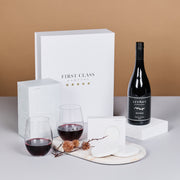 Level up your gift with a bottle of Levantine Hill Shiraz, paired with wine tumblers and stylish marble coasters. It’s a celebration-ready gesture without the need for extravagance. (13% ACL/VOL)