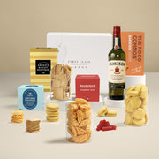 A bold and warming choice, this hamper features a full-sized bottle of Jameson Irish Whiskey with a carefully selected mix of artisan crackers, BBQ crisps, gingerbread and premium chocolates. Ideal for clients, colleagues or anyone who enjoys a smooth sip, it’s presented in a luxury gift box with a personalised top card for a memorable touch.