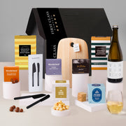 Celebrate in style with this elegant charcoal house-shaped gift box, filled with premium treats and entertaining essentials. Vandenberg Australian Sparkling sets the tone, paired with the Kooyong Charcuterie Board and matching Cheese Knife Set. A generous mix of caramel brownies, shortbread, artisan lavosh, choc raspberries and more makes this hamper perfect for sharing. With a balance of savoury and sweet, it’s a standout gift for new homes, milestones, or moments worth toasting.
