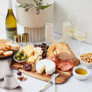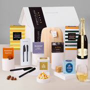 Celebrate in classic style with this curated collection, housed in our elegant white house-shaped gift box. Featuring Chandon Australian Sparkling and a Kooyong Charcuterie Board with matching Cheese Knife Set, it’s designed for effortless entertaining. Sweet and savoury delights including lemon jam filled biscuits, gourmet popcorn, artisan lavosh, cinnamon almonds and choc raspberries make this hamper a well-rounded gesture for clients, friends or loved ones.