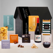 Housed in a refined charcoal house-shaped gift box, Luxury Abode Cheers is designed for those who appreciate a rich glass of Shiraz and a generous grazing moment. The selection includes honey soy chicken bites, tangy snack mix, cinnamon almonds, and soft shortbread fingers, accompanied by a duo of classic confectionery. A complete gift for housewarmings, client appreciation, or relaxed end-of-week celebrations.