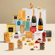 Indulge in the ultimate luxury with both Moët & Chandon French Champagne and Veuve Clicquot French Champagne, perfectly paired with an array of gourmet delights. Savour sweet chilli & sour cream Mediterranean mix, honey soy chicken bites, lemon jam biscuits, strawberry twists, artisan gingerbreads, and lavosh. Enjoy the crunch of outback mix and cinnamon almonds, alongside the decadent sweetness of milk choc raspberries, white choc raspberries, and honey roasted peanuts. Presented in a beautiful gift box, this hamper delivers elegance in every detail.