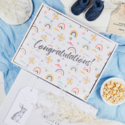 Introducing the So Cute Baby hamper, the perfect gift for any new arrival. This beautifully curated hamper includes a free pair of michu Baby UGGs to keep those little toes cozy. The Rupert & Jane Henry plush bunny is a super soft and cuddly companion that will provide endless snuggles, and the Rupert & Jane long sleeve romper, beanie, and singlet are practical yet stylish additions to any little one's wardrobe. The michu fleece cloud baby blanket is perfect for snuggling up in, while Hopscotch gourmet caramel popcorn is a delicious treat for parents. And for added entertainment, the hamper also includes a michu teether. Give the gift of love and comfort with the So Cute Baby hamper.