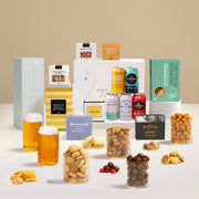 Perfect for the craft beer lover, this hamper features a standout selection of Balter XPA, CBCo IPA, Stone & Wood Pacific Ale, 4 Pines Pale Ale, and 4 Pines Pacific Ale, complete with a set of two Kooyong beer glasses. Savoury and sweet accompaniments include sweet chilli & sour cream Mediterranean mix, lemon jam biscuits, outback mix, cinnamon almonds, cheddar cheese savoury bites, milk choc raspberries, honey roasted peanuts, and sugared fruit pastilles. Presented in a beautiful gift box, it’s the ultimate indulgence for beer connoisseurs.