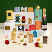 Elevate the festive season with the iconic Moët & Chandon French Champagne, a true celebration in every glass. This luxurious hamper brims with both savoury and sweet indulgences, from mediterranean mix, BBQ crisps and pretzels to buttery shortbread, lemon jam biscuits, cinnamon almonds and caramel popcorn. Festive favourites like strawberry twists, milk choc raspberries, marshmallow clouds and sugared pastilles add a sweet sparkle. Beautifully presented in our First Class Hampers luxury Christmas gift box, it’s the ultimate expression of Christmas elegance. (12% ACL/VOL)