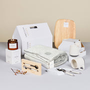 Presented in a crisp white house gift box, this collection is perfect for creating a moment of comfort and understated elegance. The Kooyong Luxury Cotton Throw sets a warm and inviting tone, while the Charcuterie Board brings effortless style to casual entertaining. A pair of Chapter Coffee Mugs and Laguiole teaspoons add a comforting ritual to slow mornings or quiet evenings. Finished with the soft glow of the Embre Beachwood Candle, this is a timeless gesture for new beginnings or thoughtful milestones.